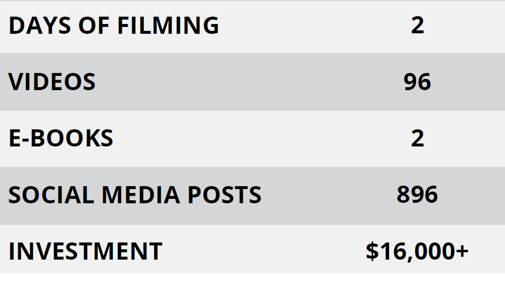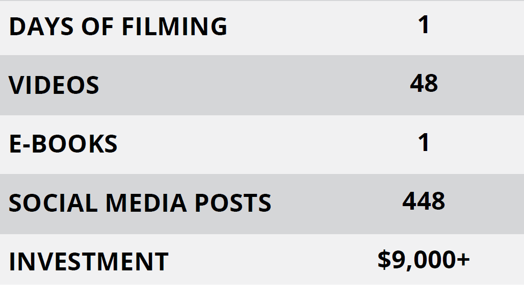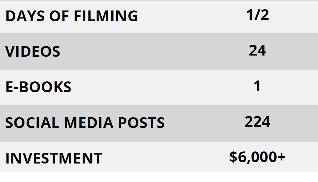 We start with video. Through our experience, we’ve learned that video content creation does not have to be difficult, time consuming, or even extremely expensive. Our goal is to create high quality, effective videos that make you look great on camera - comfortable, authentic, and trustworthy. Content creation is one of the most important pieces of your marketing strategy and our product provides a lot of individual pieces of video that can be used in many ways. We truly enjoy working with firms to stretch and reuse content so that it can be released throughout the year.